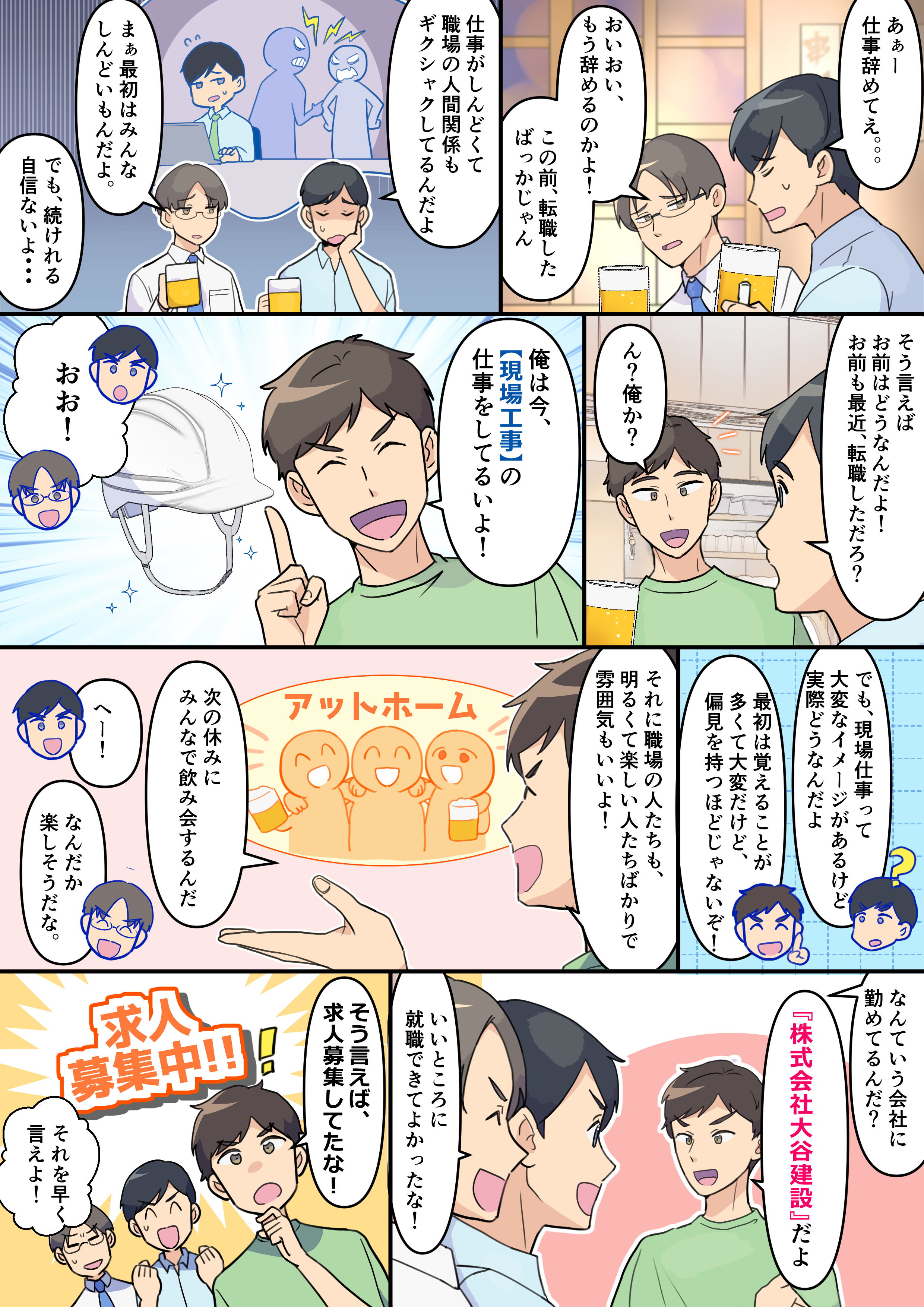 株式会社大谷建設は京都府木津川市にある建築一式工事・解体工事をおこなう総合建設会社です。木造・RC造・鉄骨造・外構工事・基礎工事・土木工事などの建造物の解体工事まで幅広く業務を行っております。現在、当社では業務拡大のため新たな仲間を募集しております。地元地域で働きたい方、建築土工・解体工事に興味がある方は、お気軽にご応募ください。前向きで真面目に取り組んでくださる方のご応募お待ちしております。